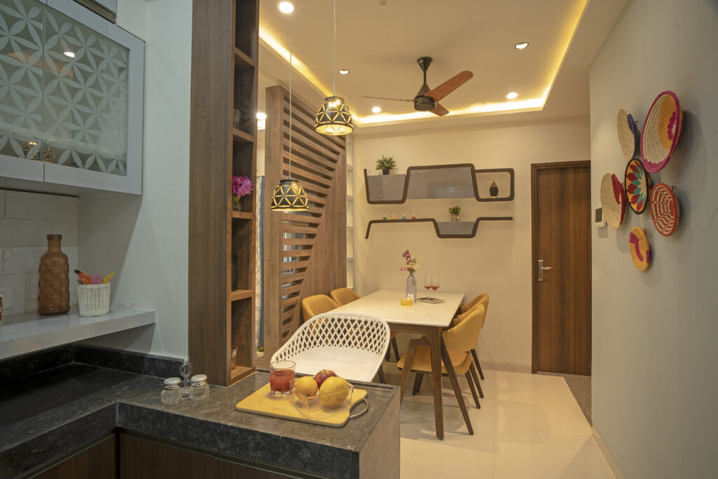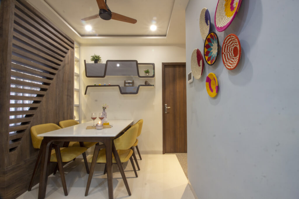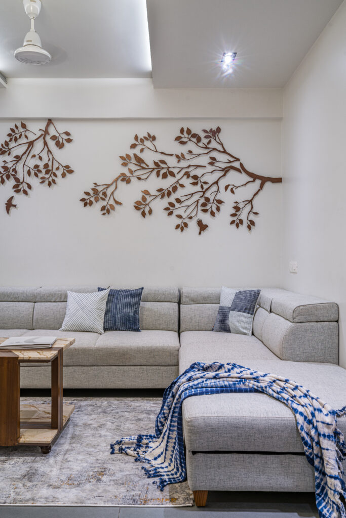 Our design team adopted a smart space planning approach, ensuring that every corner of the home had purpose and function. The living and common areas were designed in neutral shades for timeless elegance, while the kids’ rooms became canvases for creativity. Key Highlights include: Personalized Kids’ Rooms: Every detail was carefully curated from customized laundry bins to hand-painted wall art. The back wall of the bed was adorned with adorable illustrations that brought character and warmth. Hands-On Collaboration: The design team and client worked together to paint geometrical shapes on the kids’ walls, making the process interactive, memorable, and deeply personal. Vibrant yet Functional: The palette for the kids’ rooms embraced bright and cheerful tones while keeping layouts practical for study, play, and rest.