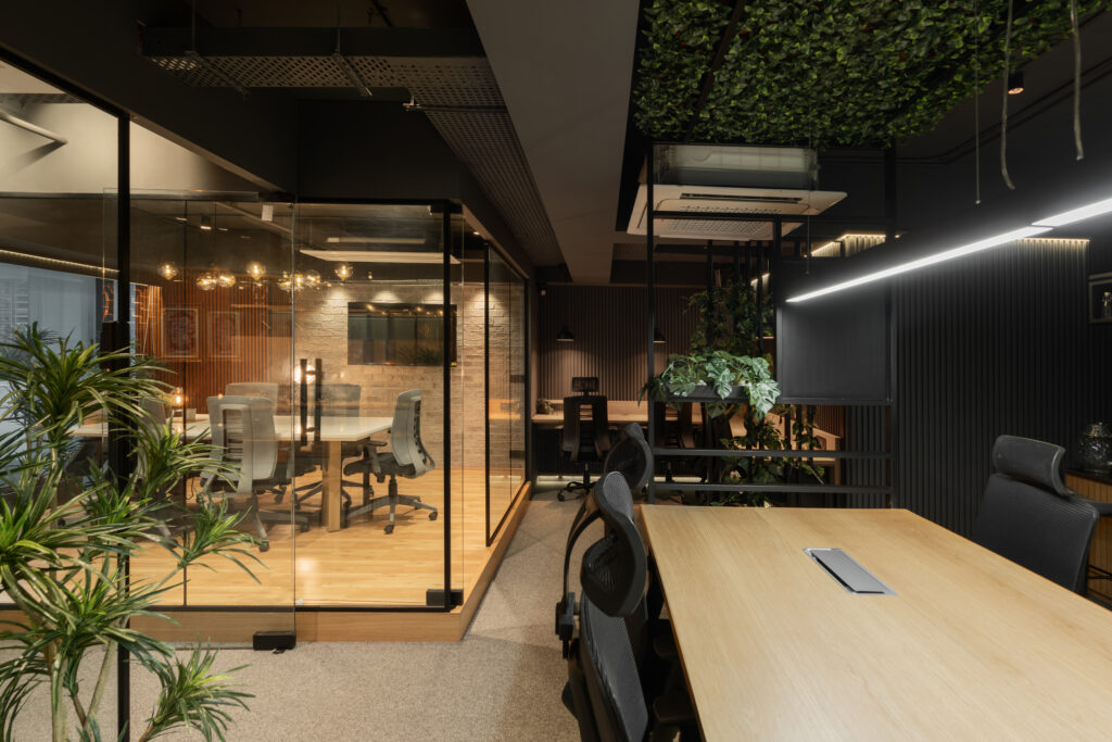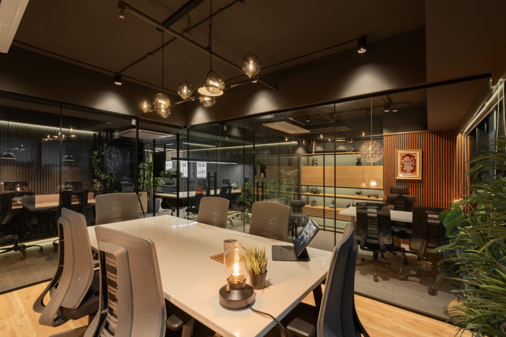 The project was successfully executed into a remarkable office space that exudes warmth, focus, and comfort. The dark and modern interiors, paired with biophilic elements, not only provide a cosy refuge for the team but also help them concentrate better by disconnecting from external distractions.